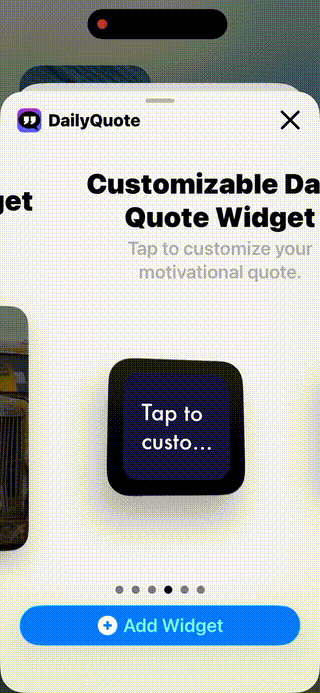 - Find “DailyQuote”: In the search bar at the top of the Widgets gallery, type “DailyQuote” or scroll down the list until you find our app icon, as shown in the animated GIF below: